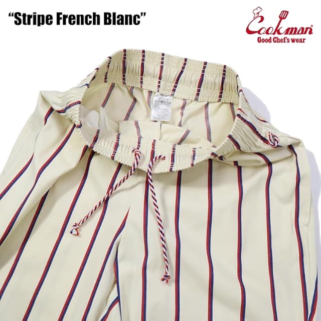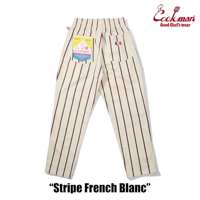 [クックマン] 正規品 Chef Pants Stripe シェフパンツ ストライプ ブラック オリーブ ネイビーブラウン グレー ミント グリーン (XL, French Blanc)