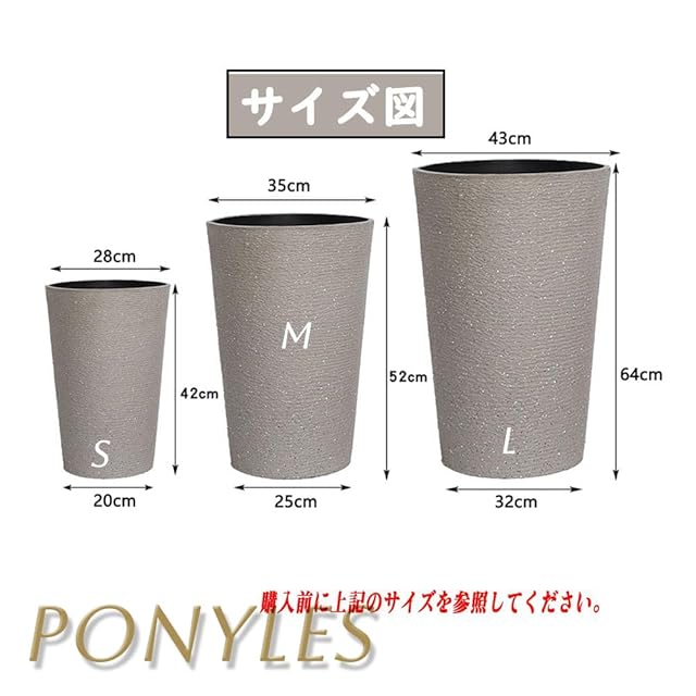 PonyLes プランター 大型 植木鉢 おしゃれ 受け皿付き 軽量 屋内 屋外用 プランター 深型 高さ42cm ガーデニング 現代風 軽量 排水穴 通気透水 シンプル インテリア 部屋 オフィス 屋内 屋外用 (S, グレー)
