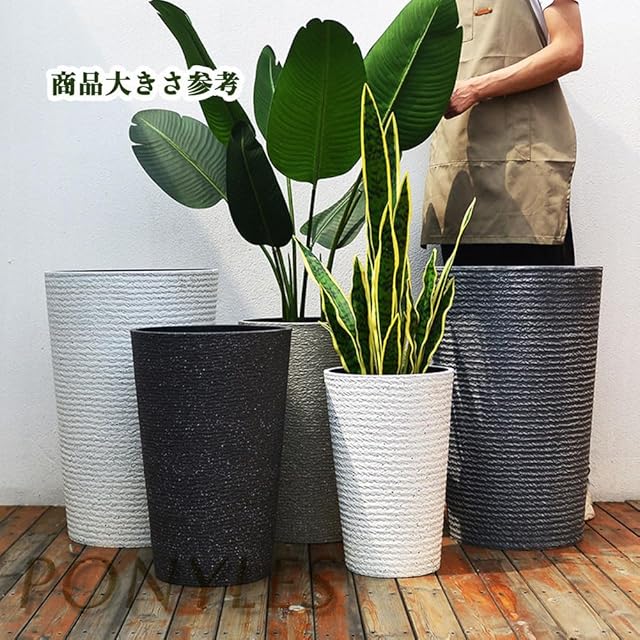 PonyLes プランター 大型 植木鉢 おしゃれ 受け皿付き 軽量 屋内 屋外用 プランター 深型 高さ42cm ガーデニング 現代風 軽量 排水穴 通気透水 シンプル インテリア 部屋 オフィス 屋内 屋外用