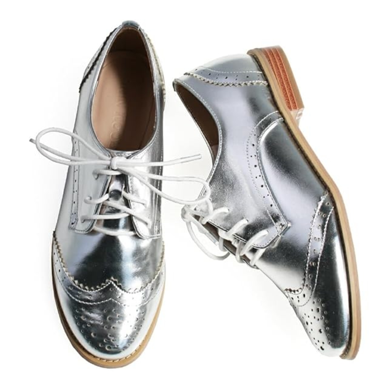 [ルームナイン] ウィングチップ トラッド オックスフォード ドレス シューズ レディース マニッシュ おじ靴 ローヒール レースアップ パンプス (sz-2856) シルバー LL