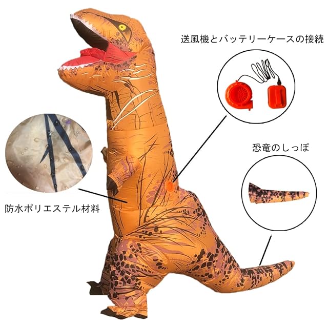 【セット内容】この恐竜の着ぐるみには、衣装、送風機、バッテリーボックス(バッテリーは含まれていません)、恐竜キーホルダー 1点が含まれています