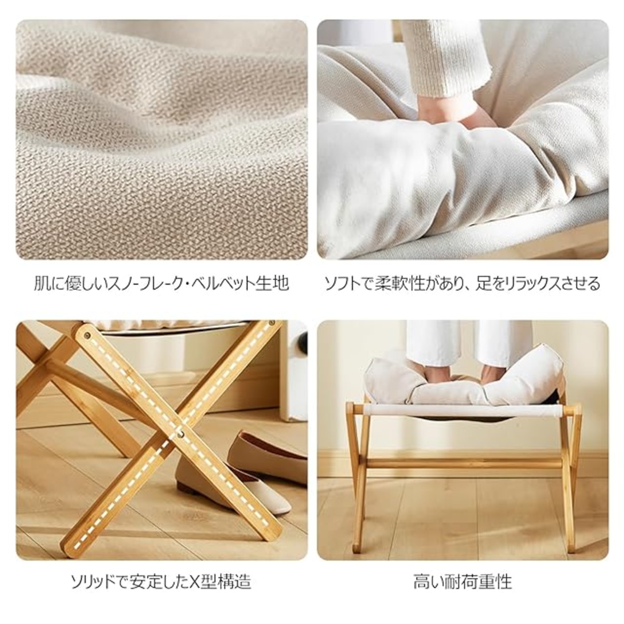【取り外し可能】スツールは、取り外し可能な肌に優しい布カバーを付きます。フットスツールの座面には高密度・高反発のスポンジを制作しており、とても柔らかく長持ちします。 座っても足を置いても、とても快適です。注意:商品の取り付けが終わったら、中央側面の2本のネジを少し緩めることができます。可動性なのできつすぎてバランスが崩れやすく、少し緩めると不安定な状況にならない。