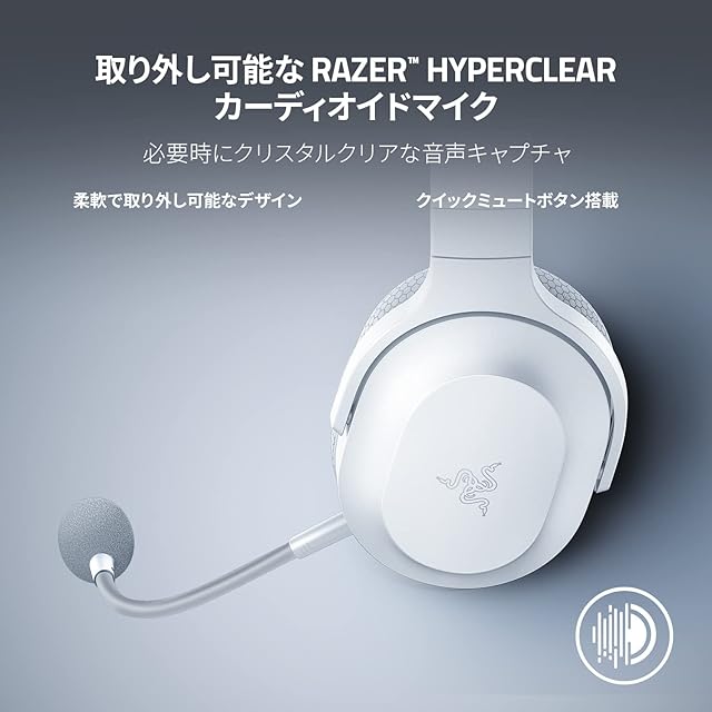 Razer(レイザー) Barracuda X Mercury White (Bluetooth対応モデル) ワイヤレスゲーミングヘッドセット TriForce40mmドライバー 着脱式 HyperClearカーディオイドマイク 50時間駆動 2.4GHz/Bluetooth USB-Cドングルで素早く切り替え PC PS5 PS4 Switch スマホ バラクーダエックス | primer