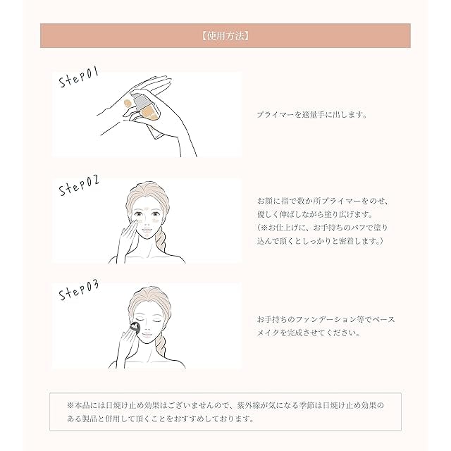 トーンアップ&スキンケアプライマー ライトベージュベースで生き生きとした透明感のある明るいお肌を演出 毎日つけるファンデーションの下にひと塗り 核心技術のIN&OUTスキンケア ナノサイズの有効成分「エクソソーム」 ツボクサの細胞から抽出したエクソソームを配合 ツボクサの細胞から抽出したナノサイズ(20~200nm)の物質で、皮膚への吸収に優れており、 肌細胞の活力に必要な物質(RNA/タンパク質など)を含んでいる天然のリポソームです。 ツボクサの有効成分をしっかりとお肌の奥へ届けることが可能ですので、化粧をしながらもスキ ンケアが可能となってます。 特許「ハイブリッド分散スクリュー工法」 超密着型 「マイクロバブル」でトレンドをリード 水分状剤形と油分状剤形のバランスがとれた剤形化技術で、「時間経過でバブルが溶け出すの を防止」「成分のバランスが崩れる事を防ぐことができる」などの安定性を持ちます。 また、ひとつひとつのバブルの中に「酸化鉄+酸化チタン」(カラー)が配合されており、お 肌に塗布するとバブルがはじけ、中のカラーによりトーンアップが期待頂けます。 「IN&OUTスキンケア」 外側は超密着の「マイクロバブル」 内側はツボクサ由来の「エクソソーム」でケア 超密着&高保湿&軽やかなテクスチャー 一般のトーンアップクリームとは違う密着力。 オイルなのに軽く、まるで肌が息をしているような自然なメイクアップを演出します。 保湿にも優れており乾燥肌・脂性肌の方関係なく、どなたでもご使用頂けます。