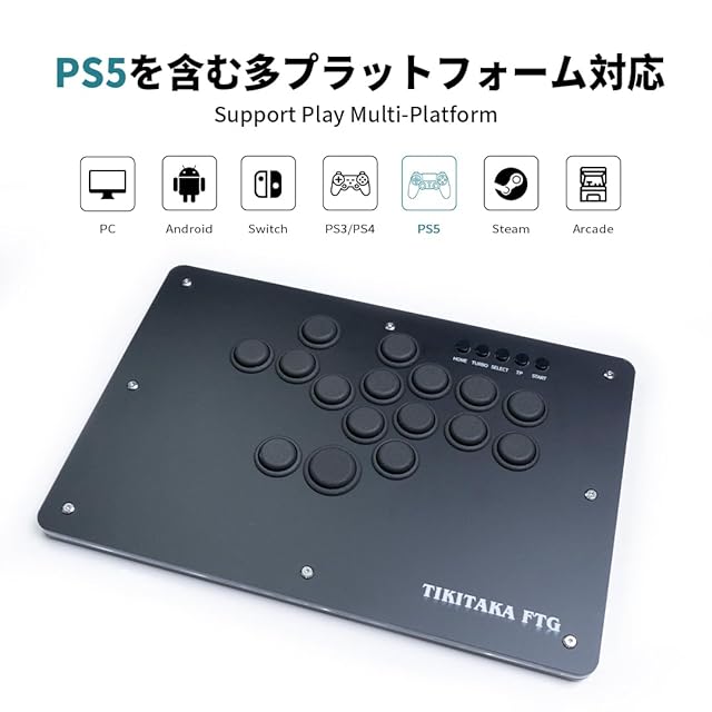 TIKITAKA FTG T16B-PS5 PS5プラグアンドプレイ Tシリーズ クラシックボタンレイアウト ナイロンボタン レバーレスコントローラー 12mm超薄 SF6 アーケード格闘ゲーム用ゲームコントローラー PS5対応 For PC/PS5/PS4/Switch 製品に日本語の取扱説明書が付属している(T16B-PS5) | primer