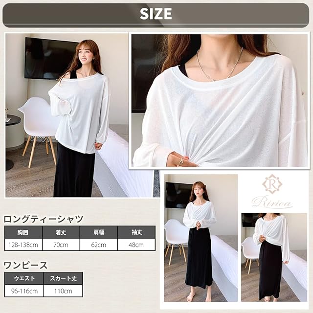 [RIRIOA] パジャマ ルームウェア (ワンピース と Tシャツ の 上下セット) レディース ロングワンピース ペチコート ネグリジェ (ブラック)