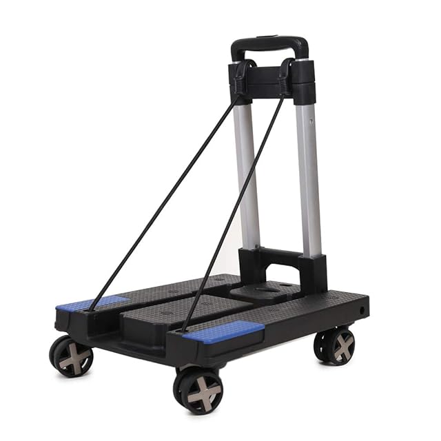 【重い荷物も運べる荷台】 キャリーカートは頑丈なので耐荷重は80kgと重い荷物も運ぶこと ができます。高い強度で耐屈曲性に優れたPP荷台、模様が付き滑り止め効果がある。