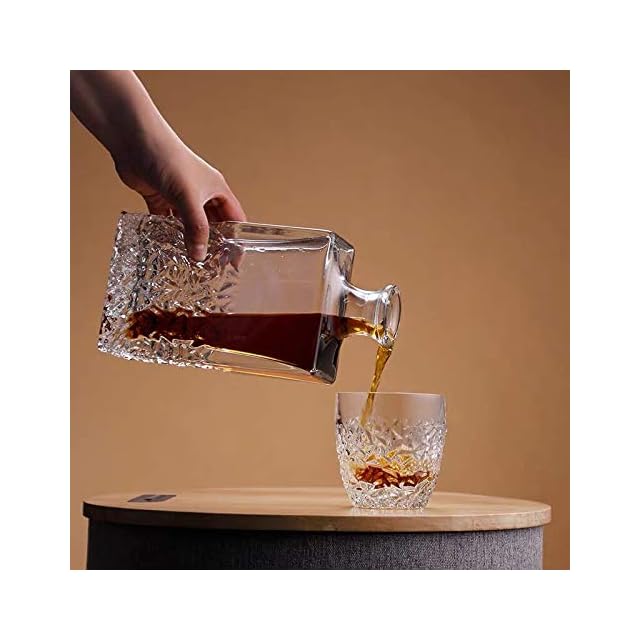 このデカンタは、無鉛ガラスで作られ、輝きと透明感を演出するクラシックなデザインです。カット調のグラスはテーブルに高級感を添え、滑り止めの効果もあります。肉厚成型でしっかりしたつくりで、安定感抜群です。700mlの容量に、蓋付きで密封性が高く、ウイスキーやブランデーの香りと風味をしっかり保存します。サイズは、幅11cm、高さ30.5cmで、重量は0.5kgです。弊社製品は安心保証付きで、万が一商品不具合の時は早急に対応させて頂きます。