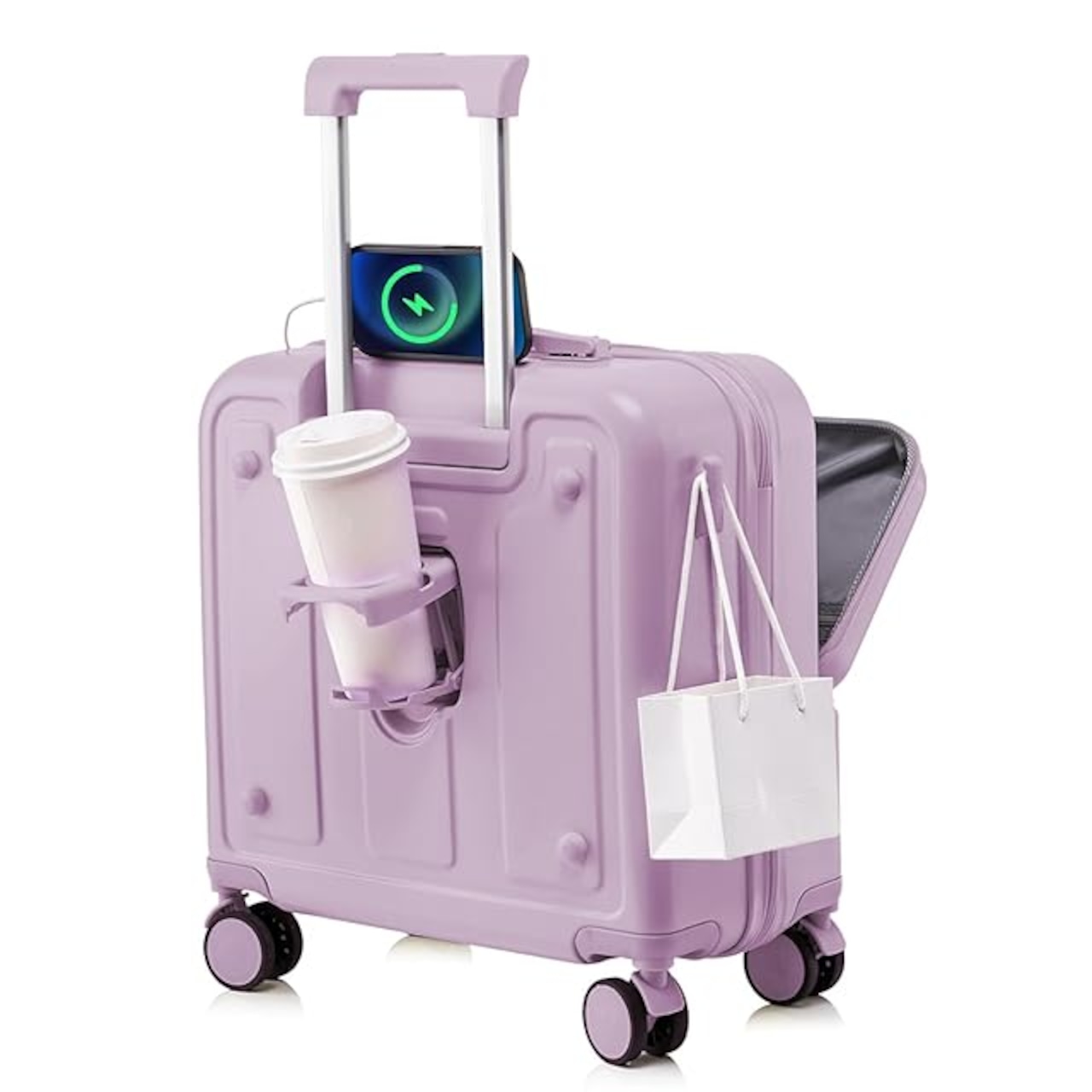 [Manatsulife] スーツケース ssサイズ 機内持ち込み キャリーケース ミニサイズ フロントオープン カップホルダー付き USBポート付き 軽量 耐衝撃 360度回転 静音 ダブルキャスター 乾湿分離 PC材質 旅行 出張 XBS09 (パープル, XS(35L/ミニ型),1-3泊)