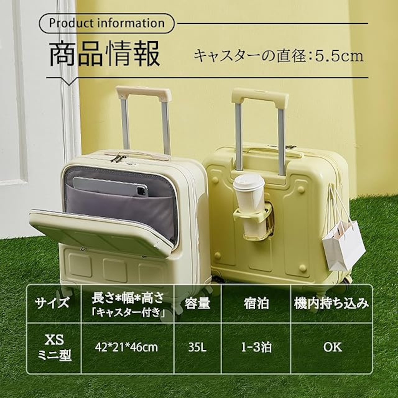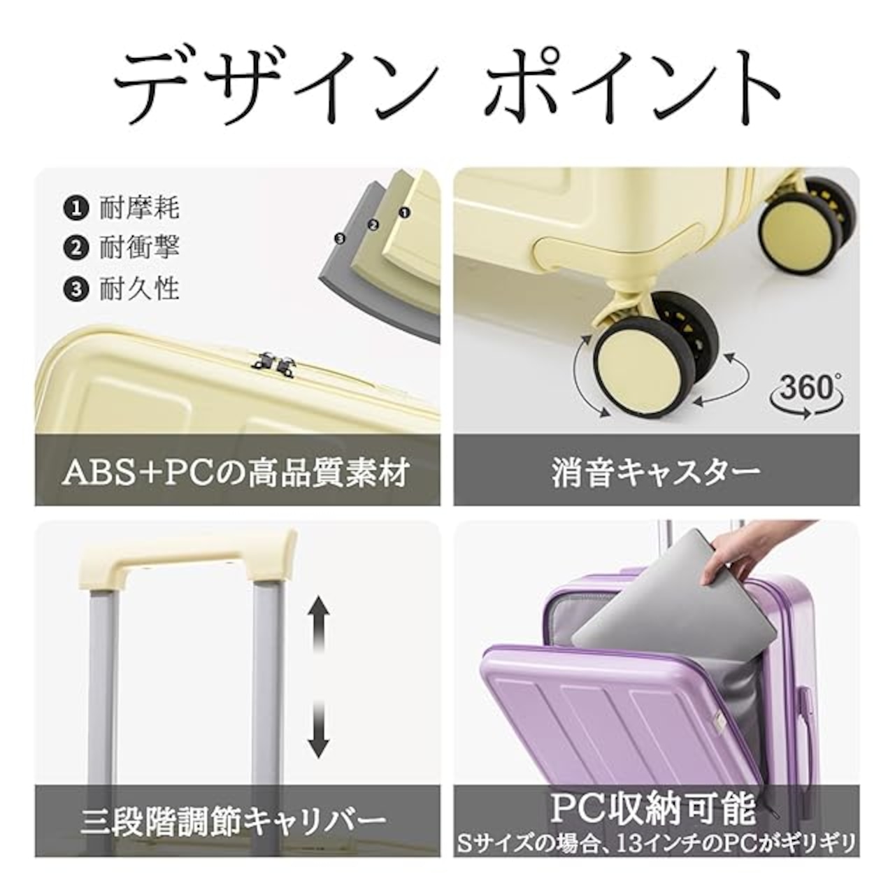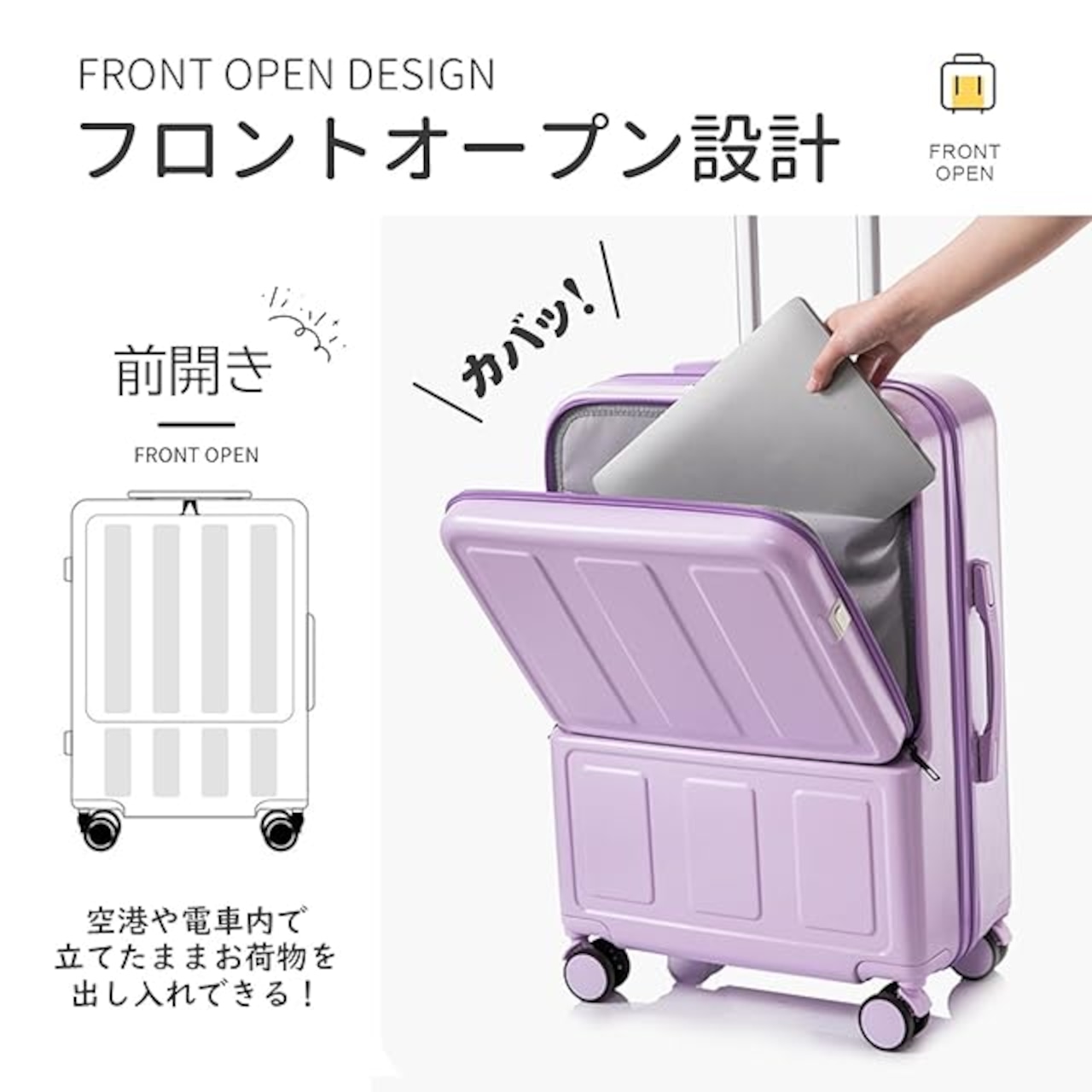 ✅【フロントオープン設計】弊社の人気スーツケースXB966の基に更にレベルアップ!フロントオープンのデザインで、空港や電車内で、立てたままお荷物を出し入れできる!フロントオープンの部分は小物はもちろん、商務用の場合にPCなどの荷物もスーツケースを開くことなく取り出すことができる。「Sサイズの場合は13インチのPCがギリギリ収納可能」