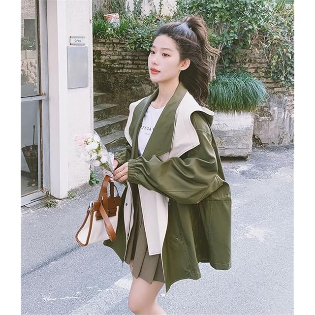 [JINZUOMA] レディース ジャケット コート マウンテンパーカー トレンチコート アウター ブルゾン 春服 秋服 長袖 カジュアル ファッション フード付き 快適 ゆったり 防風 アウトドア 日常着 (グリーン,M) | primer