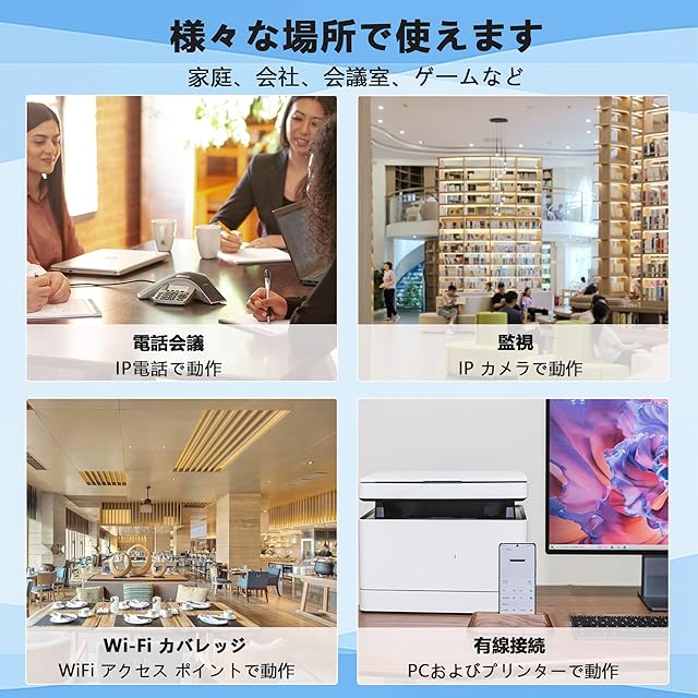 【IEEE802.3AF/AT標準】このPOE ハブは、すべての標準IEEE802.3af / at POEスイッチ、POEインジェクター、POE NVRで動作できます。POE出力は、POE IPカメラ、IP電話、ワイヤレスAP、IPスピーカーなどの標準POEデバイスに電力を供給します。規格上は100mまで給電できます。LANの規格であるイーサネットの最長伝送距離が100mだからです。【重要な注意】1.通常のLANエクスパンダーとして使用する場合、デバイスにはPOE機能がありません。5V 1A電源アダプターを接続してください。2. POEスイッチを接続し、電源は必要ありません。3. 通常のLANスイッチを接続します。プラグインDC 48V 1A電源アダプター。【パッケージ内容】1xPOE ハブ、1x日本語取扱説明書。