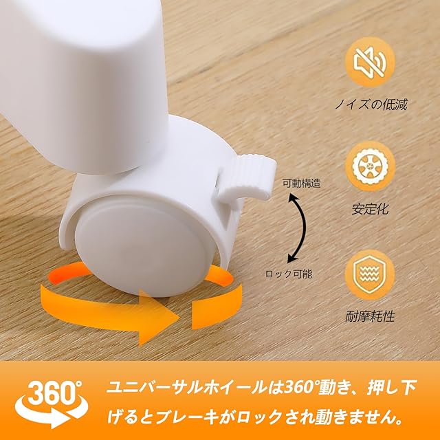【キャスター付き】ハンガーラック底には4つのキャスターがあり、360°回転して自由に移動できます。ブレーキ装置付きで、いつでも好きな位置でロックでき、揺れずに安全で頑丈です。