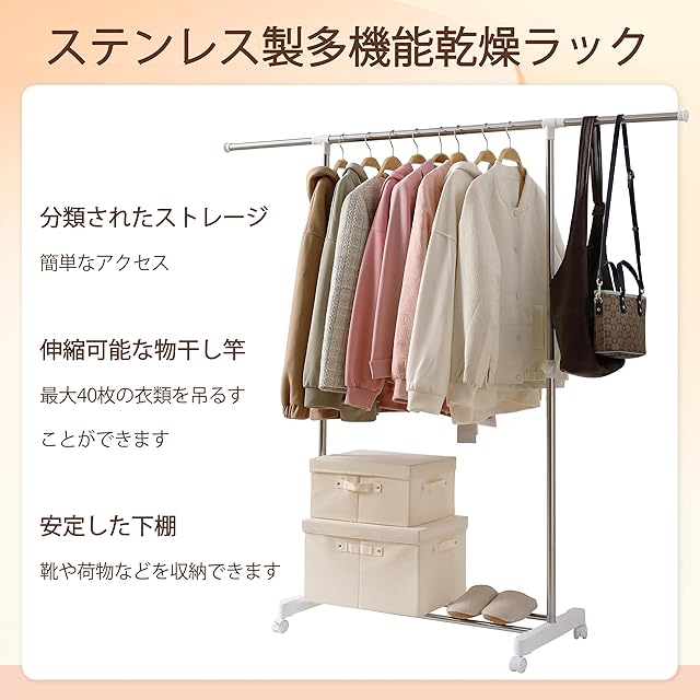 ORLOTSONハンガーラック 洋服ラック 高さと幅の調節が可能 耐荷重40KG 幅88~150cm ステンレス製 キャスター付き ハンガーラック大容量 ハンガーラック頑丈 室内物干し 多機能収納 組み立て簡単 安定性 (88-150) x 43 x (95-160) cm ホワイト | primer