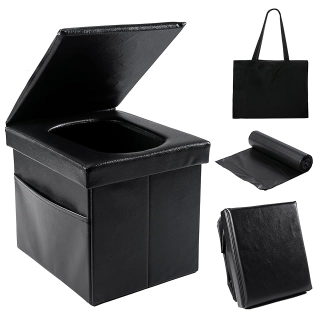 簡易トイレ 災害用 非常用トイレ 超耐荷重200kg ポータブルトイレ 折りたたみ式 スツールとして使える 防災グッズ 便座一体型で組み立て簡単 携帯トイレ 車 交通渋滞 地震 キャンプ 汚物袋12枚付 (ブラック) | primer