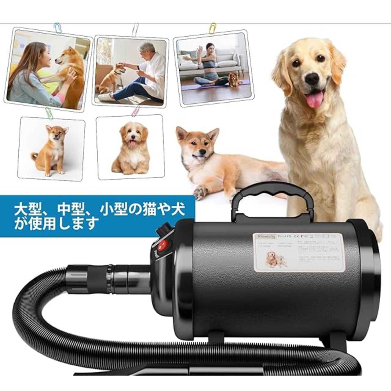 Blanlody 犬 ドライヤー 4.5PS / 3200W 低ノイズ 50dB 犬用ドライヤー 業務用 無段階 風速75m/s ペットドライヤー 自宅で 猫 ドライヤー 温度可調整 4つのノズル付きと ブラシ | primer