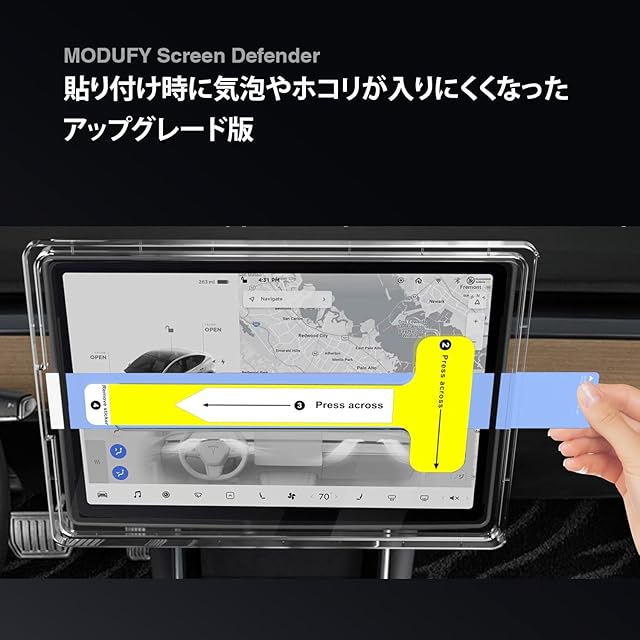 MODUFY テスラ ハイランド&ジュニパー専用フロント&リアスクリーン保護ガラスセット 貼付キット付き (高硬度/透明度/傷防止/反射防止/映り込み防止/アンチグレア/耐指紋/耐衝撃 / 9H / Tesla / モデル3 (Model 3) / モデルY (Model Y) / Highland/Juniper/モニター/フィルム/取り付けガイド) | primer