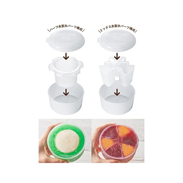 牛乳やジュースを凍らせた味付きの氷や、冷凍フルーツもそのまま削れる! 定番のかき氷はもちろん、オリジナルの可愛いかき氷まで幅広く楽しめる♪ 夏らしいマンゴーやパイナップル、もちもちとした食感のタピオカ、 バナナ、イチゴ、練乳などをトッピングすれば、オリジナル台湾風のかき氷を味わえます。「ハーフ氷」や「ミックス氷」が手軽に削れちゃう! 付属の製氷パーツでふたつの味を一度に削って、ハーフ氷やミックス氷が楽しめます。 “作って楽しい、食べておいしい”映えるかき氷がかんたんに!