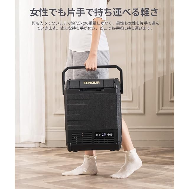 【省エネしながらしっかり冷やす】急速冷凍でき、省エネ性にも優れた高品質コンプレッサーを採用します。MAXモードに設定しても消費電力はわずか約36Wで、通常の車載冷蔵庫より28%ほどの消費電力を削減します。確実な省エネ性能で電気代を節約しつつ猛暑を快適に過ごすことができます。空っぽの状態で、庫内温度が25℃から-20℃まで下がるのにおよそ30分しかかかりません。あっという間に急速冷凍でき、飲みたい時はすぐに冷たいドリンクを飲めるのは最高です。