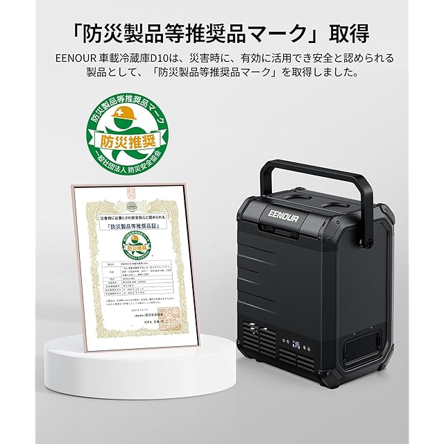 EENOUR 車載冷蔵庫 D10 10L -20℃~10℃ バッテリー1個付き 小型 両開きフタ コンプレッサー式 4WAY電源対応 AC100V DC12V/24V 電池 ポータブル冷蔵庫 コードレス冷蔵庫 急速冷凍 省エネ 静音 軽量 コンパクト LCD温度表示 庫内灯・大型ハンドル付き 家庭アウトドア両用 キャンプ 車中泊 一人暮らしに大活躍
