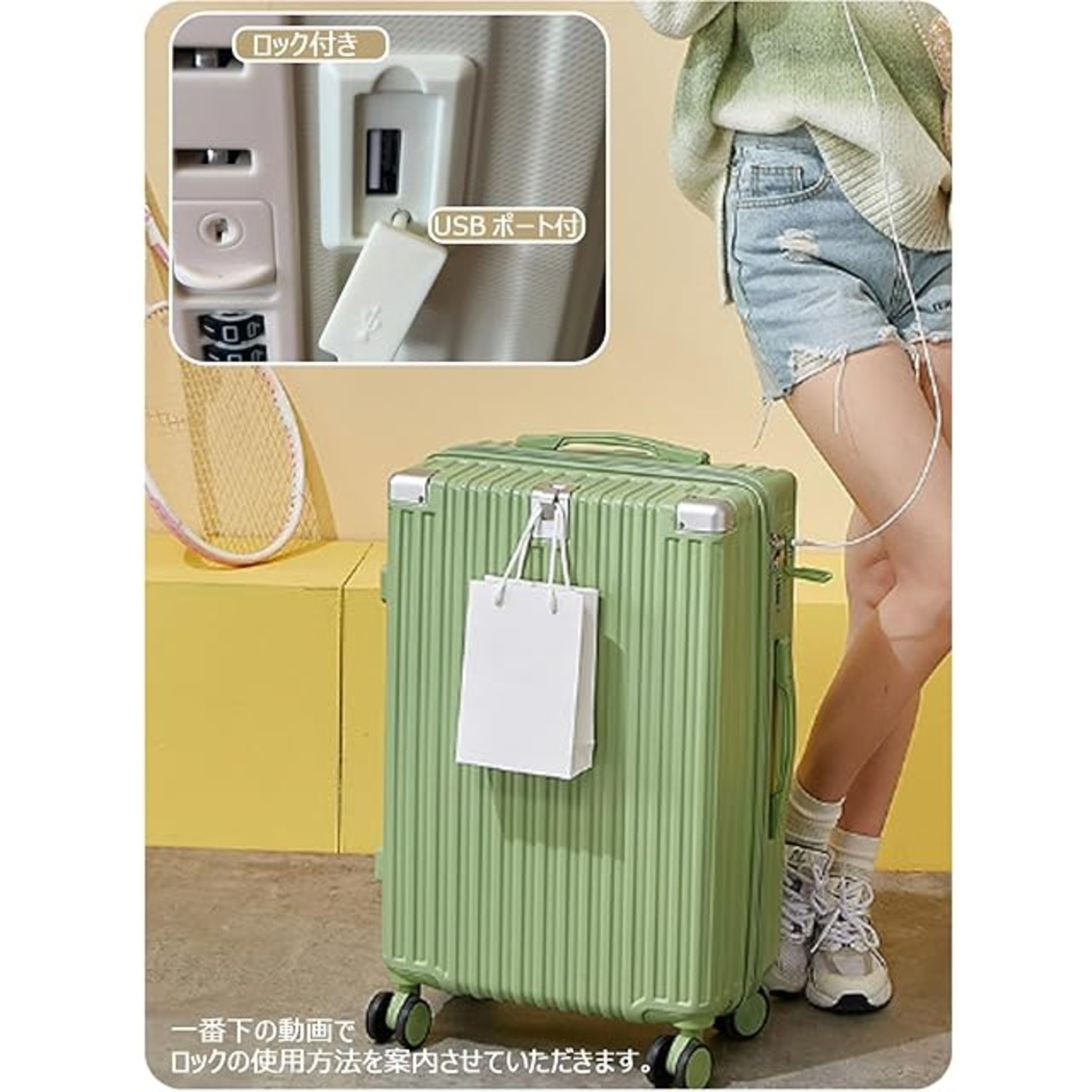 [Manatsulife] キャリーケース スーツケース 旅行 出張 耐衝撃 カップホルダー付き USBポート付 360度回転 ロック付 静音 超軽量 ビジネス おしゃれ XB966. (S(機内持込,31L), ホワイト)