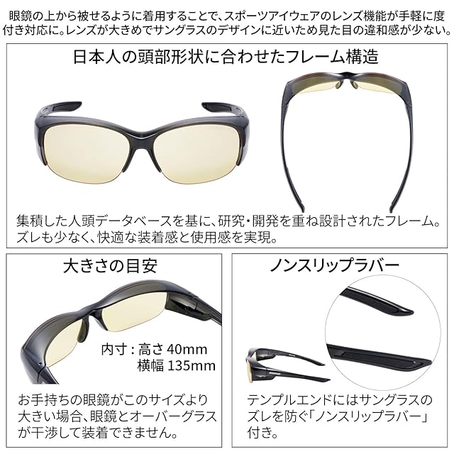 [スワンズ] 日本製 サングラス メガネの上からかける オーバーグラス OG5 オージーファイブ 夜間使用 夜間運転 ドライブ ランニング OG5-0121 CBK ナイトイエロー(両面マルチ)