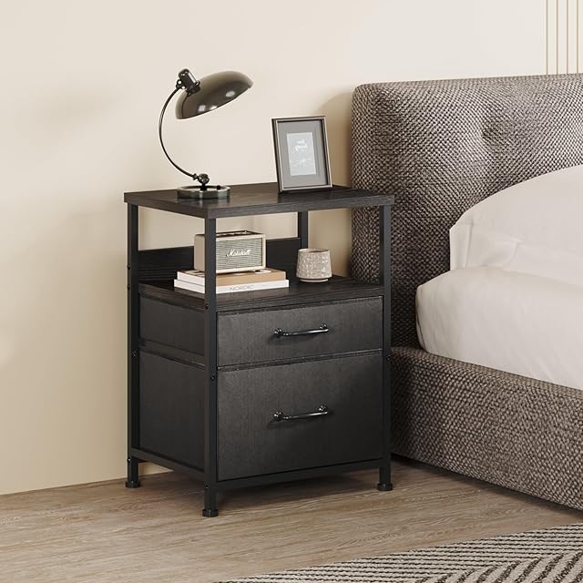 YeTom サイドテーブル 2つ引き出し付き 寝室 ナイトテーブル おしゃれ ミニ サイドチェスト 北欧 洋服タンス 収納チェスト 3段 ソファ ベッドサイドテーブル 40*29.8*53.5cm ブラック天板付き 収納付きテーブル キャビネット シンプル 黒い