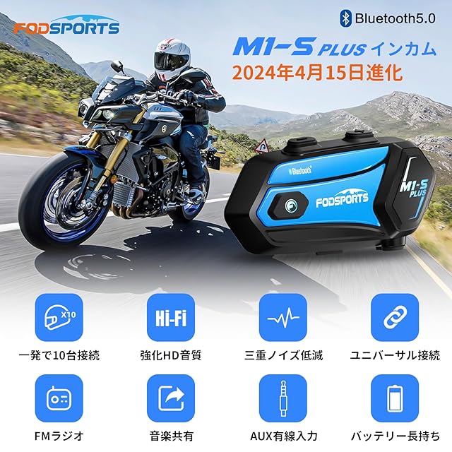 FODSPORTS バイク インカム M1-S Plus インカム 10人同時通話 連続使用20時間 マニア級音質 ユニバーサル接続 音楽共有 音響3段階調整 ワンボタンで一発接続 通話自動復帰 FMラジオ搭載 強い互換性 Bluetooth ヘッドセット インカムバイク用 日本語案内&説明書 Siri対応 バイク用いんかむ Type-C充電 2種類マイク同梱 技適認証済み(1個セット) | primer