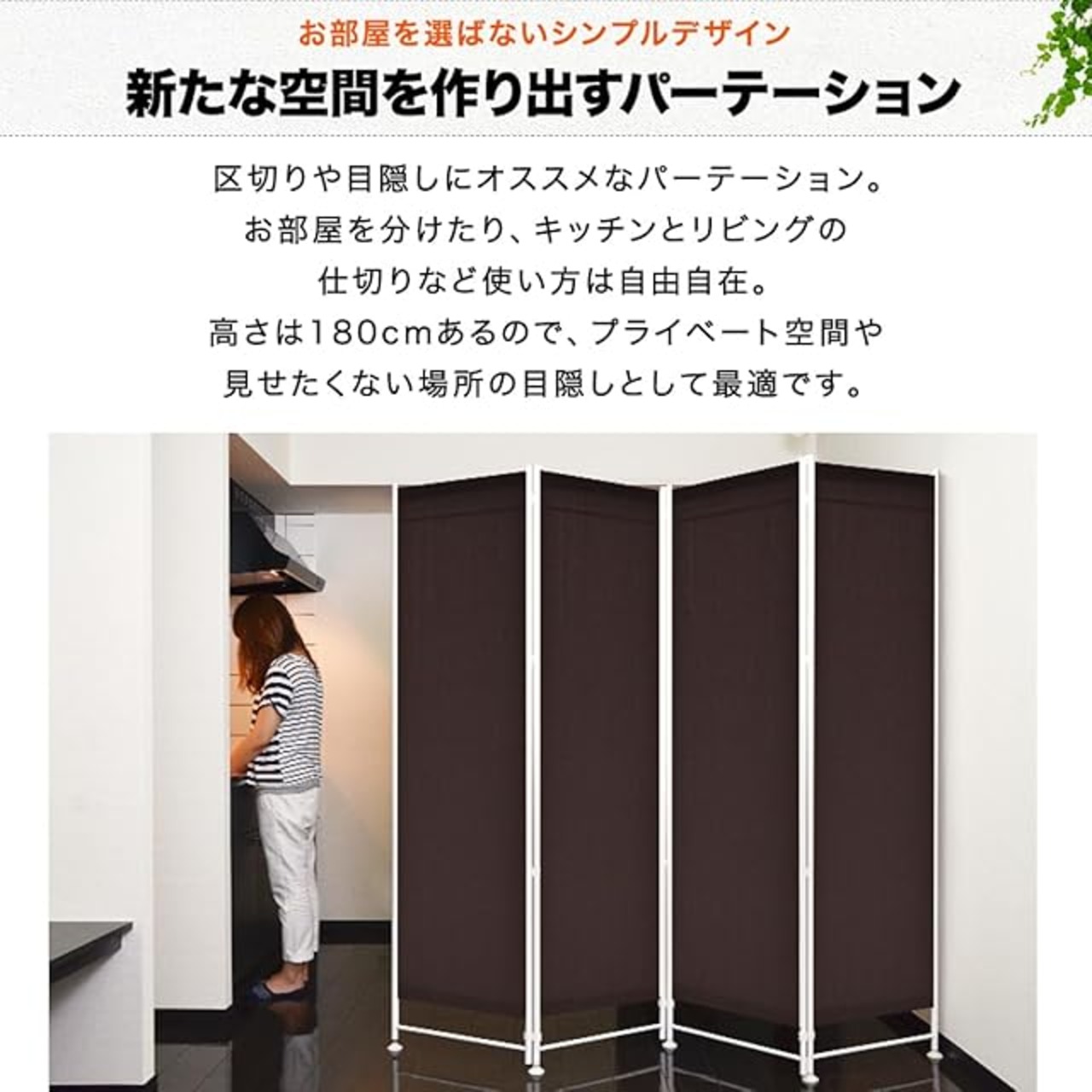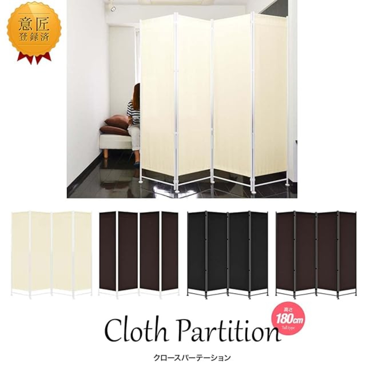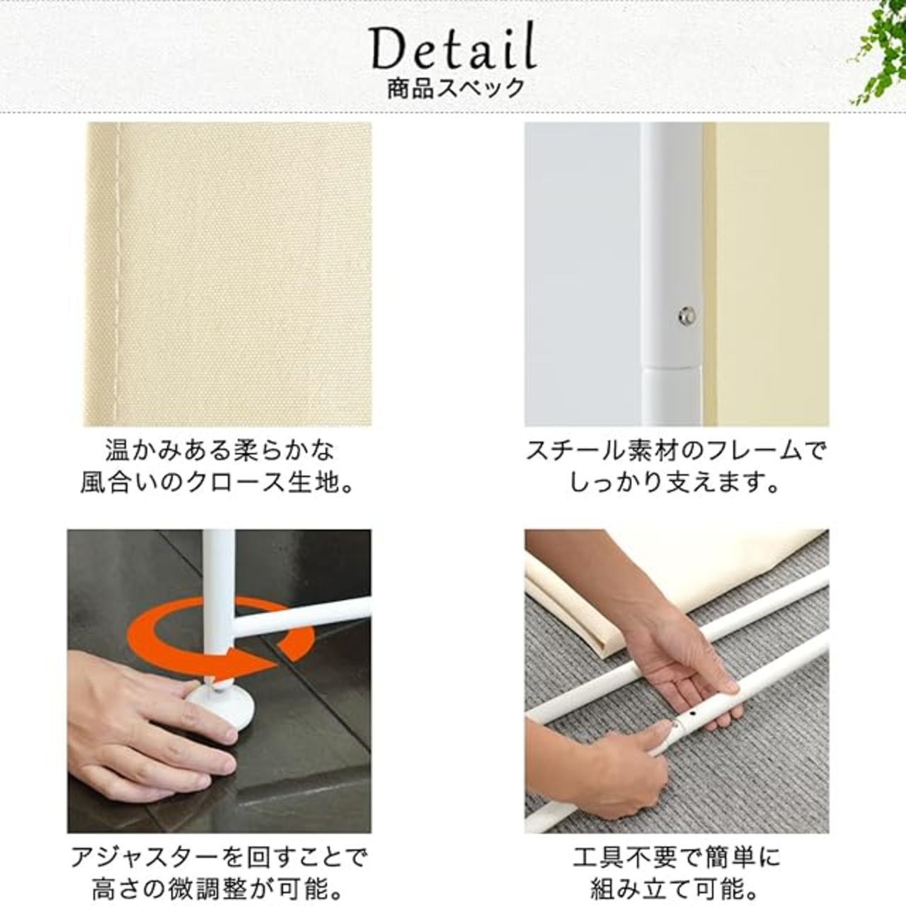 ottostyle.jp パーテーション シンプル スクリーン 目隠し 仕切り 180cm クロス 自立 連結 キッチン リビング プライベート 高さ調節 簡単 コンパクト 軽量 アジャスター オフィス [ホワイトフレーム] [本体4連] [アイボリー]