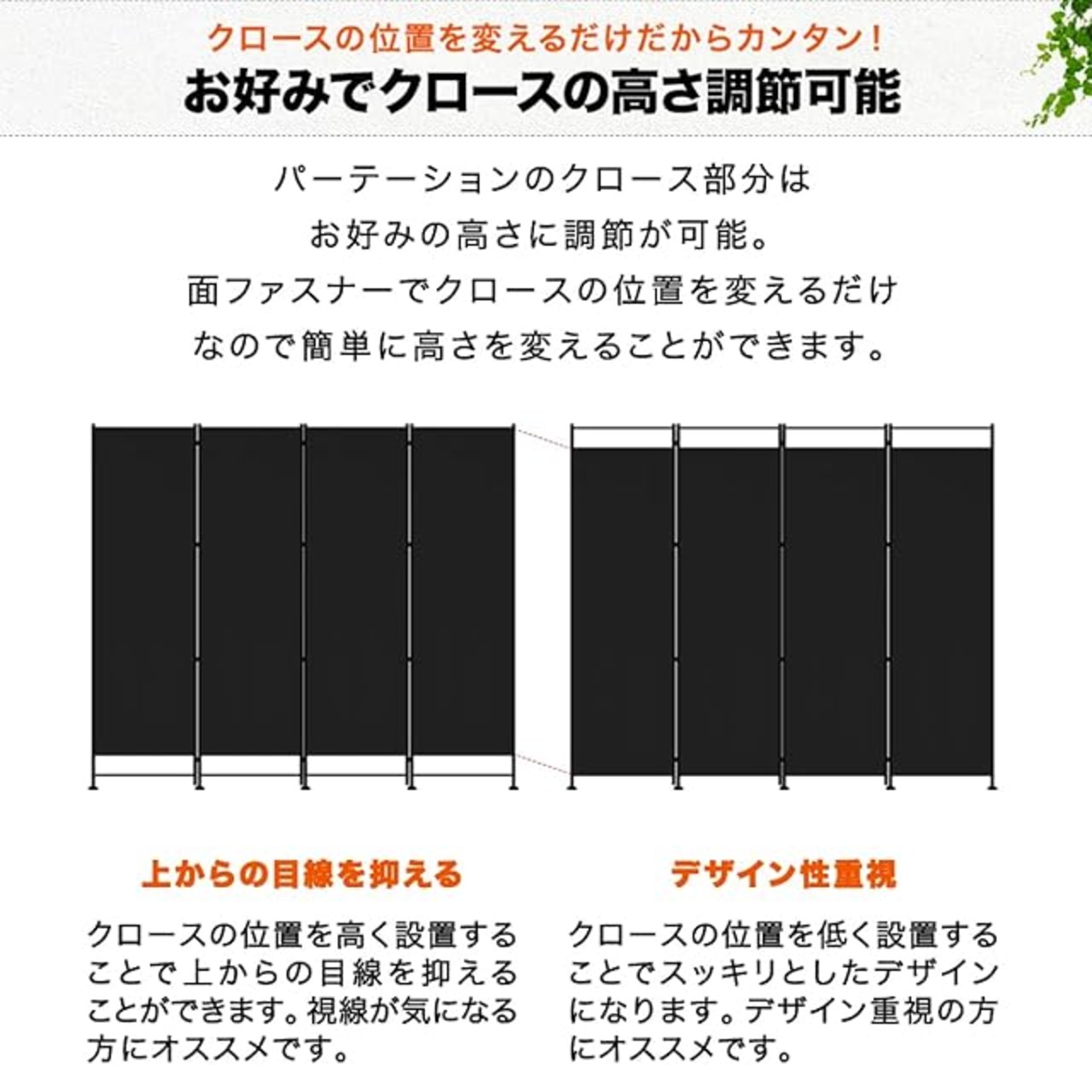 新たな空間を作り出すパーテーション 区切り、目隠しするだけで、新たな空間を作り出す事ができるパーテーションです。 玄関とお部屋を分けたり、キッチンとリビングを仕切ったり使い方は自由自在。 高さは180cmあるので、プライベート空間や見せたくない場所の目隠しとして最適です。 デザインはシンプルなので、和室・洋室・オフィスルームとお部屋を選びません。 お好みでクロースの高さ調節可能! パーテーションのクロース部分はお好みに合わせて高さ調節が可能に。 高さの調節は、工具不要ファスナーでクロースの位置を変えるだけなので簡単! クロースを高い位置に設置することで、上から目線をさらに抑えることができ、 クロースの位置を低くすることで、すっきりしたスタイリッシュなデザインになります。 軽量・コンパクトで移動や収納時も便利! 使わない時は折りたたんでコンパクトに収納できるので、収納場所に困らない設計。 重量は約6.6kgと女性ひとりでも移動できるので、掃除など動かすときもラクラク。 来客時用として、ひとつ用意してあると便利なアイテムです。 ・温かみのある柔らかな風合いのクロース生地。 ・スチール素材を使用したフレームで、しっかりと支えます。 ・アジャスターを回す事で、高さの微調整が可能。 ・商品到着後は、工具不要で簡単に組み立てる事ができます。