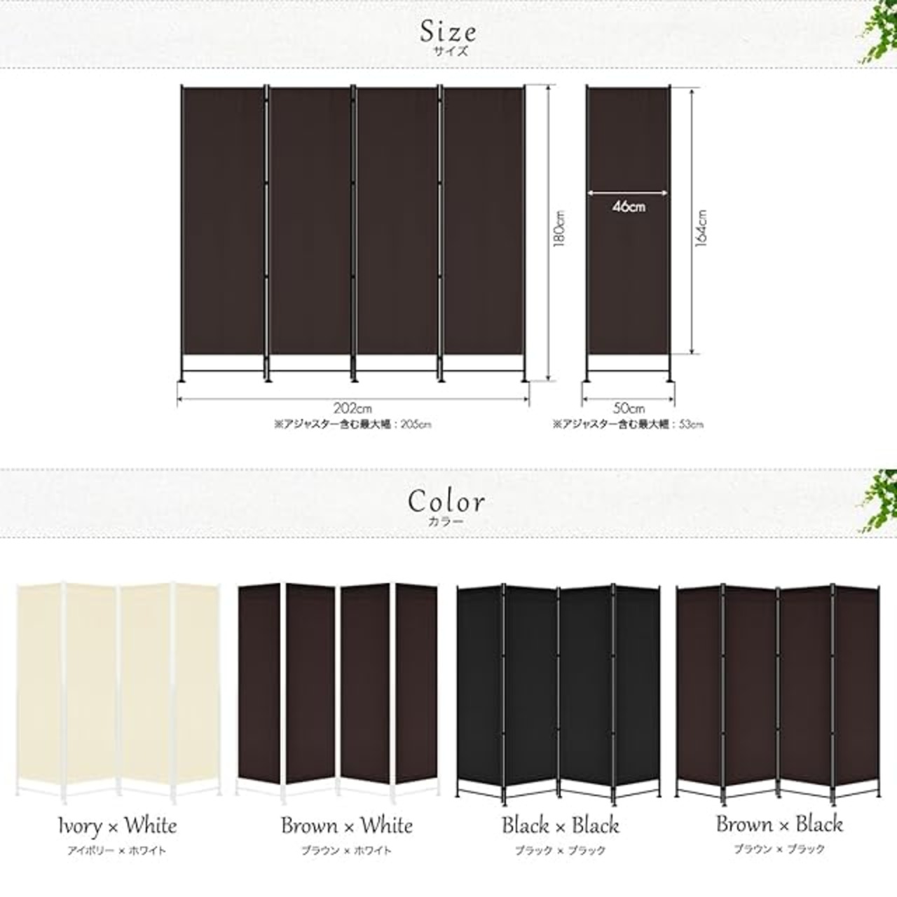 サイズ (約)幅202cm×高さ180cm(全開にした場合) ※1枚辺りの幅50cm