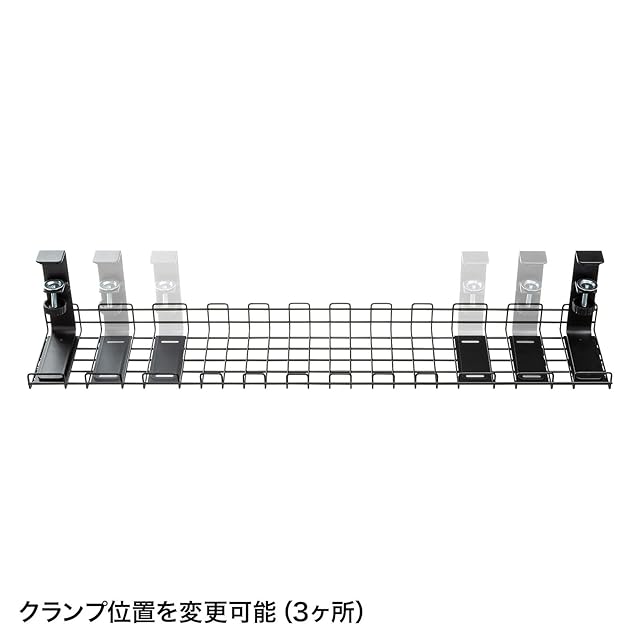 天板厚さが10~40mmのデスクに汎用クランプで締め付けて取り付けます。※バックパネル、配線口、パーティションなどで取り付けられない場合もあります。