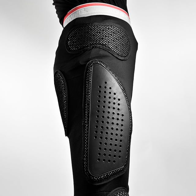 ハードプラスチックガードを尾骨・大腿部に配置し、膝にはCE規格のプロテクターを配置したプロフェッショナルモデル。