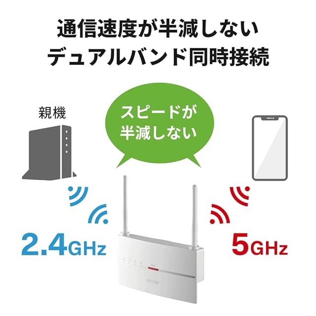 バッファロー WiFi 無線LAN 中継機 Wi-Fi 5 11ac 866 + 300Mbps コンセント直挿し/据え置き可能モデル 日本メーカー 【 iPhone 14 / 13 / 12 / iPhone SE (第二世代) メーカー動作確認済み】 WEX-1166DHP3/N
