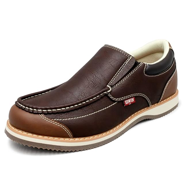 [エドウィン] スリッポン メンズ 革靴 スニーカー カジュアルシューズ 3E 紐なし ローファー 軽量 PUレザー 上質素材 柔らかい おしゃれ 紳士靴 黒 茶 edm9808 ダークブラウン 26.5 | primer