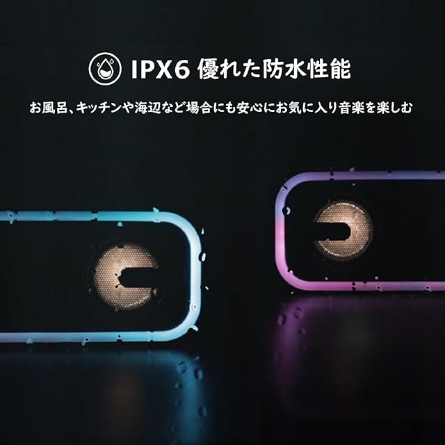 ♬【IPX6防水規格対応】IPX6防水規格を備えており、浴室でのお風呂やキッチン、海水浴、キャンプなど、水回りや屋外での使用にも最適。水しぶきや雨に強く、どんなシーンでも音楽を楽しむことができます。日常からアウトドアまで、この防水スピーカーが音楽ライフをさらに豊かにします。