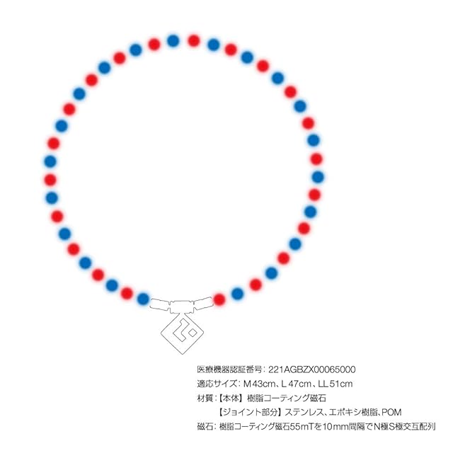 ループ全体からの磁力が広範囲に影響し、装着部位の血行を改善、コリを緩和