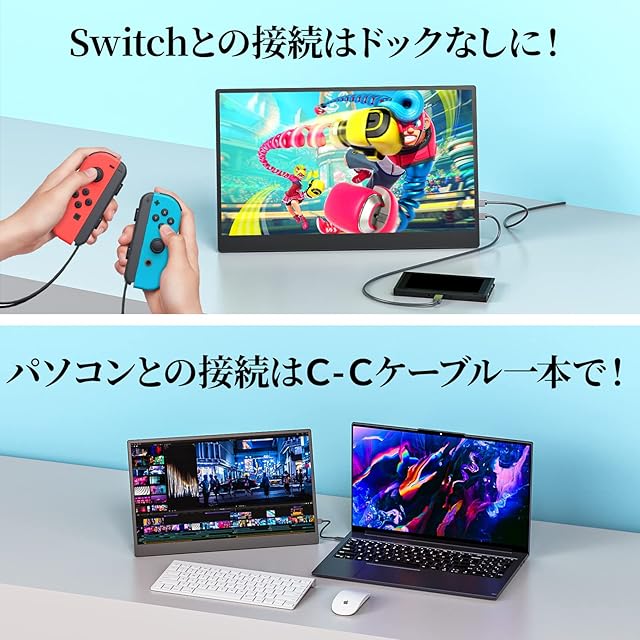 【ケーブル一本だけで接続可能】miniHDMI、Type-C二つ、3.5mmイヤホン、豊富な入力端子をもって多様な接続方法を実現。何よりも便利なのは、USB-C to USB-Cケーブル一本で映像出力と給電を同時に実現できます、しかも二つのType-C端子とも信号転送+給電両対応。Type C端子で接続できない端末は、HDMI接続との選択肢があります。両端子とも対応している端末なら自由に接続できます。