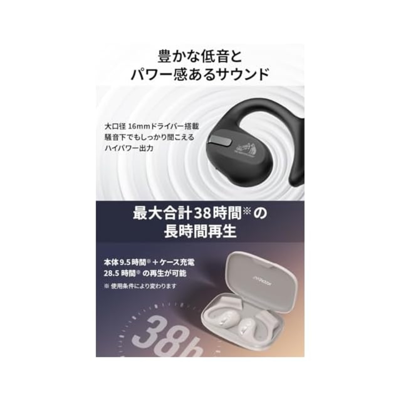 【合計38時間※の長時間再生】イヤホン本体約9.5時間※+ケース充電約28.5時間※の再生が可能です。※: 使用条件により変わります。
