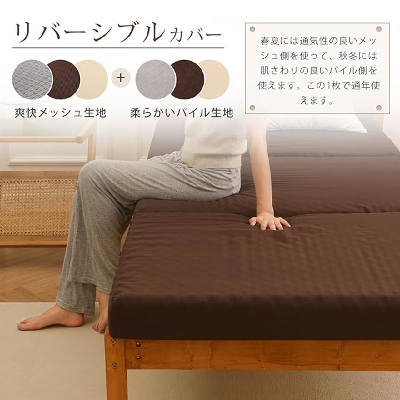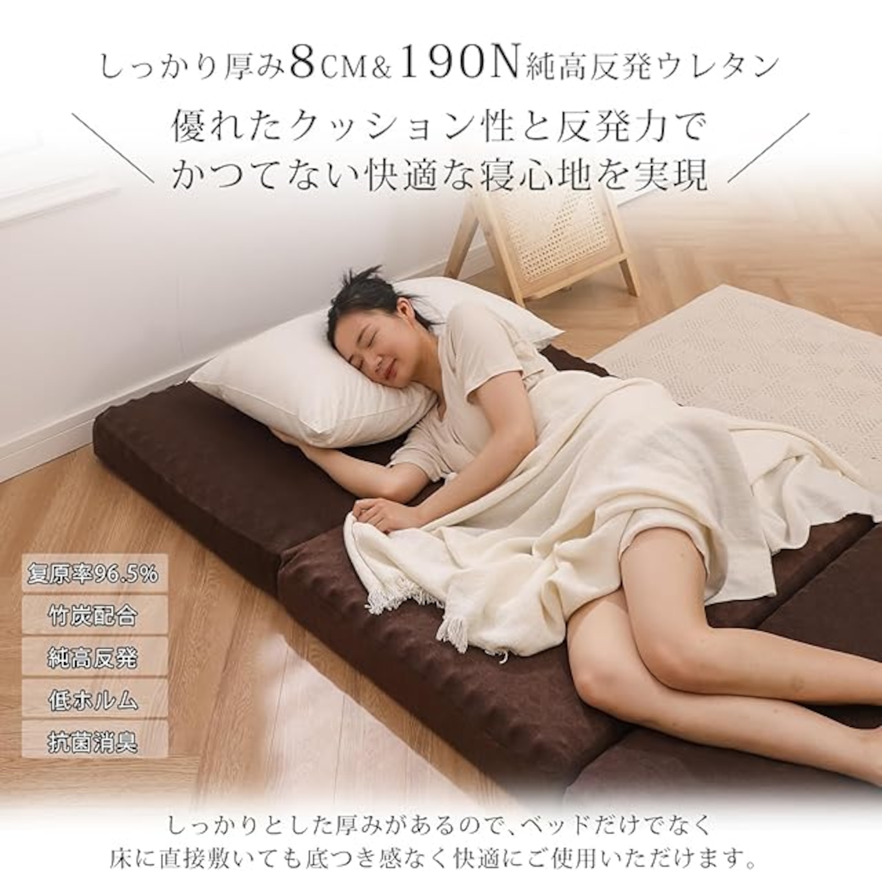 Qucover マットレス シングル 三つ折り 折りたたみマットレス 高反発 極厚8cm 硬め190N 25D 凹凸加工 竹炭消臭 体圧分散 点で支える 195*97*8 cm (ブラウン, S | リバーシブルカバー)
