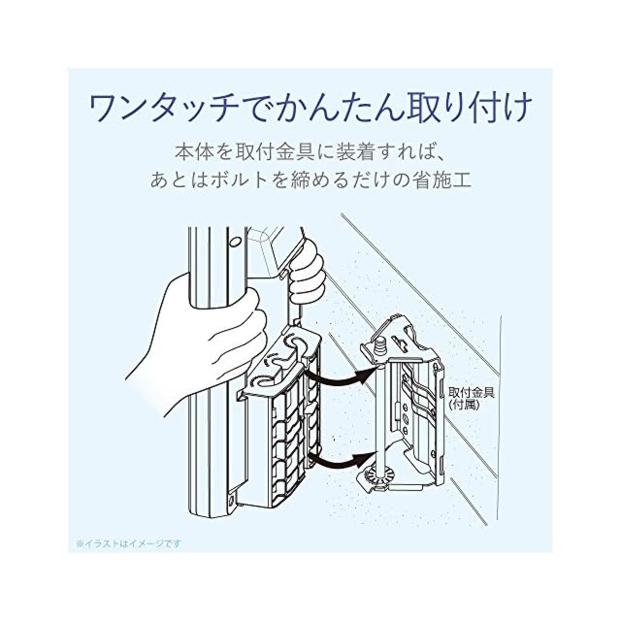 本体を取付金具に装着すれば、あとはボルトを締めるだけの省施工。ワンタッチで簡単に取付けられます。