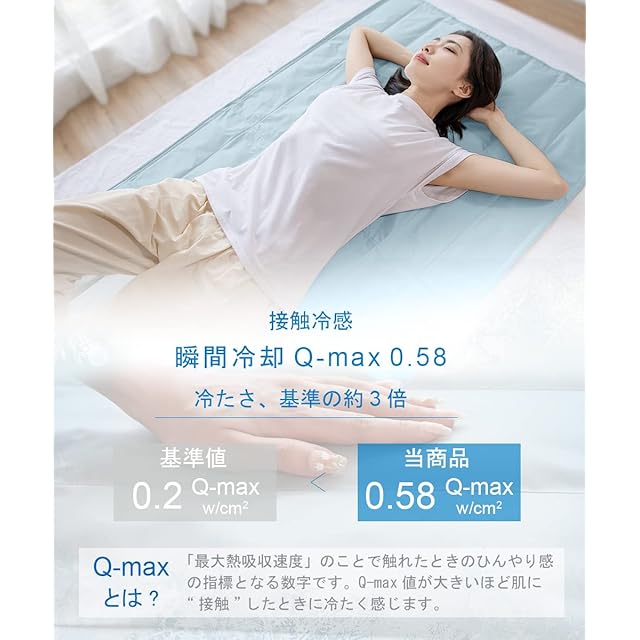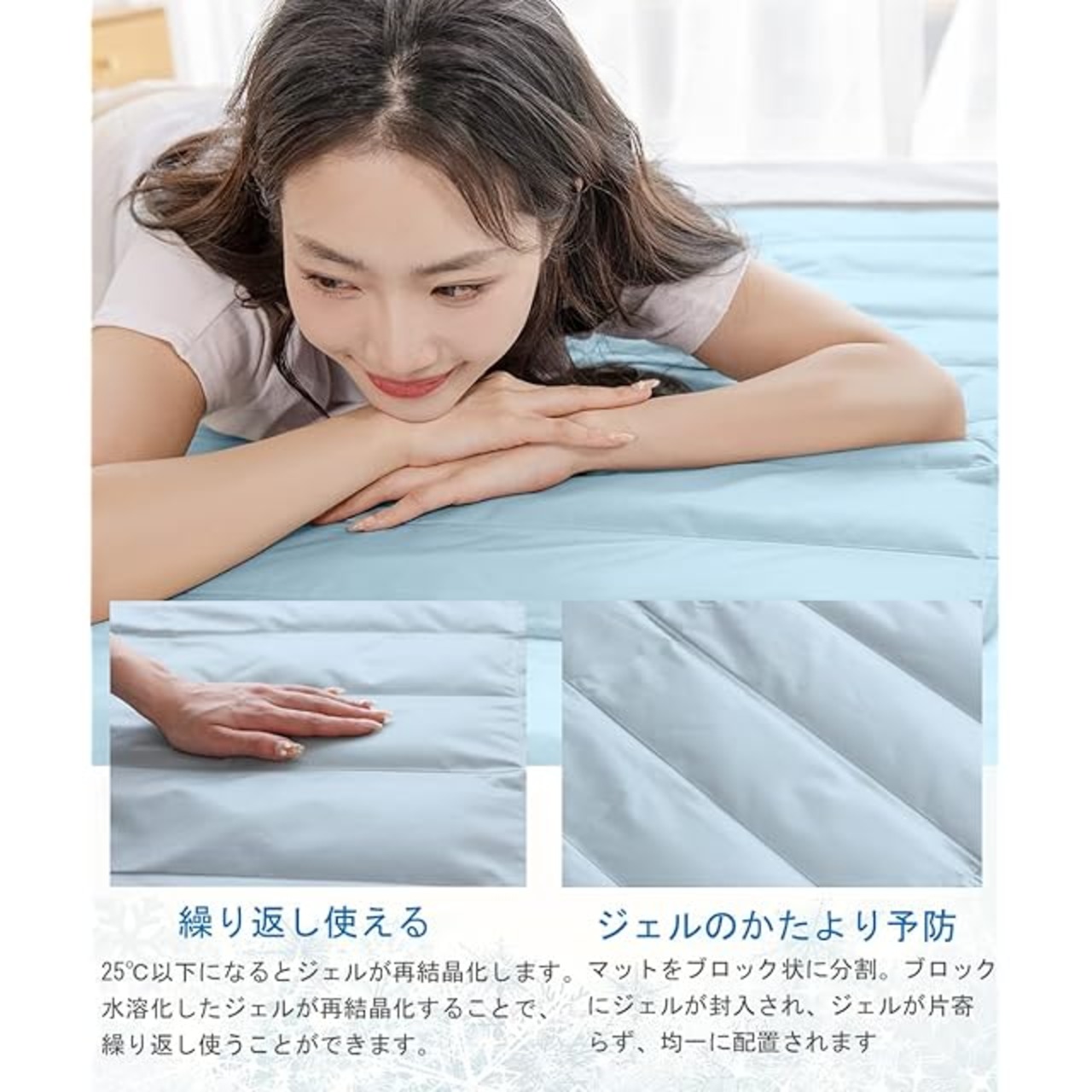 【涼しいひんやりマット】暑くて寝苦しいというときには、ひんやりと快適な睡眠ができるジェルマットがおすすめです。本製品は塩を原料とした特殊冷却ジェル「相変恒温素材」を採用し、約30℃を境に結晶化と水溶化を繰り返し、その際に起きる「吸熱反応」で体温を吸収します。最大熱吸収速度Q-maxは0.58w/cm²で、冷たさは約基準の3倍で、触れた瞬間心地よいひんやり感が伝わります。そのため、冷蔵庫や水を使わなくても、ヒンヤリとした冷感を発揮します!ヒンヤリ爽快な真夏のひとときを過ごしましょう。