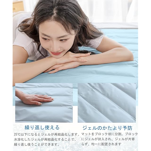 【二重縫製で液漏れ防止】液漏れを防止するため、二重縫製技術を採用し、マットの充填材が漏れることの心配がいりません。上でどんなに転がったり、押し出したりしても、漏れたりジェルがずれたりすることはありません。二人の体重がかかっても、ジェルが均一で逃げません。通常の範囲の重量では、マットが割れて液漏れすることはありませんので、ご安心に使用いただけます。