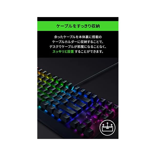 【ケーブル配線オプション】 テンキーレスメカニカルゲーミングキーボードはケーブルを整理して収納できる溝があり、どの方向にも引き出せるため、デスク環境を整理しておくことができます。