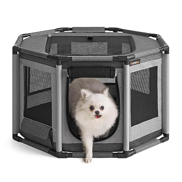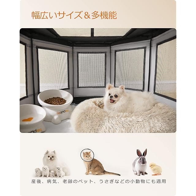 FEANDREA ペットサークル 八角形 PVCフレーム 頑丈安定 変形しない 耐久性 犬 サークル メッシュサークル 通気性 防水 分娩室 室内用 屋根付き 犬 ゲージ PDC002G01 | primer