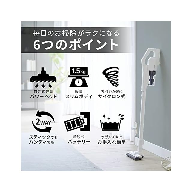 【軽量エントリーモデル】本体質量1.0kg、本体・ヘッド・パイプを合わせた標準質量1.5kg。軽量だから、お掃除ラクラク。