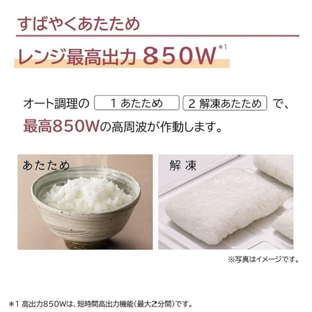 レンジ最高出力850W(最大2分間)ですばやくあたため。