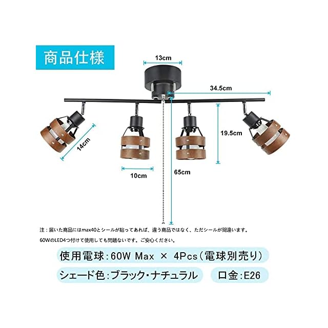 【最高の雰囲気を作り出す】四つの灯が多方向に照らして普通のライトと異なったお洒落な雰囲気が醸し出せます。気持ち、場合によって電球を変えれば別のムードに変わります。天井に映る陰影も幻で楽しめます。(ご注意:弊社のシーリングライトの電球は別売りでご了承ください。一つの電球は60Wを超えないでください。)