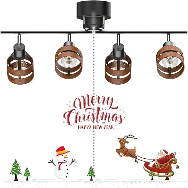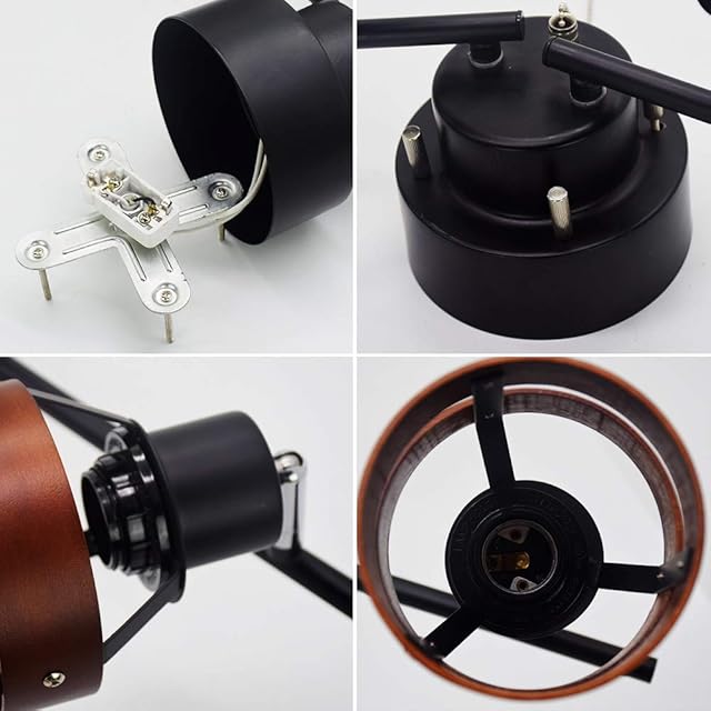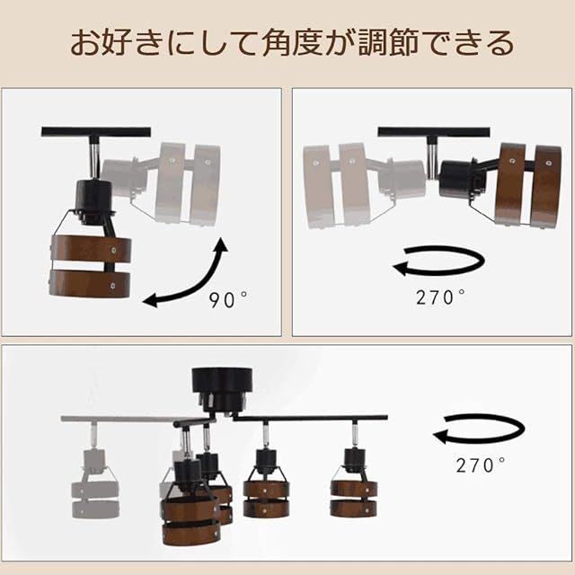 DINGLILED シーリングライト4灯 スポットライト おしゃれ レトロ 天井照明 ペンダントライト 角度調節 折りたたみ可 E26 照明器具 間接照明 プルスイッチ 和室 洋室 ダイニング リビング 寝室 キッチン 食卓 復古調 木目調 北欧 モダン カフェ風 (電球別売) | primer