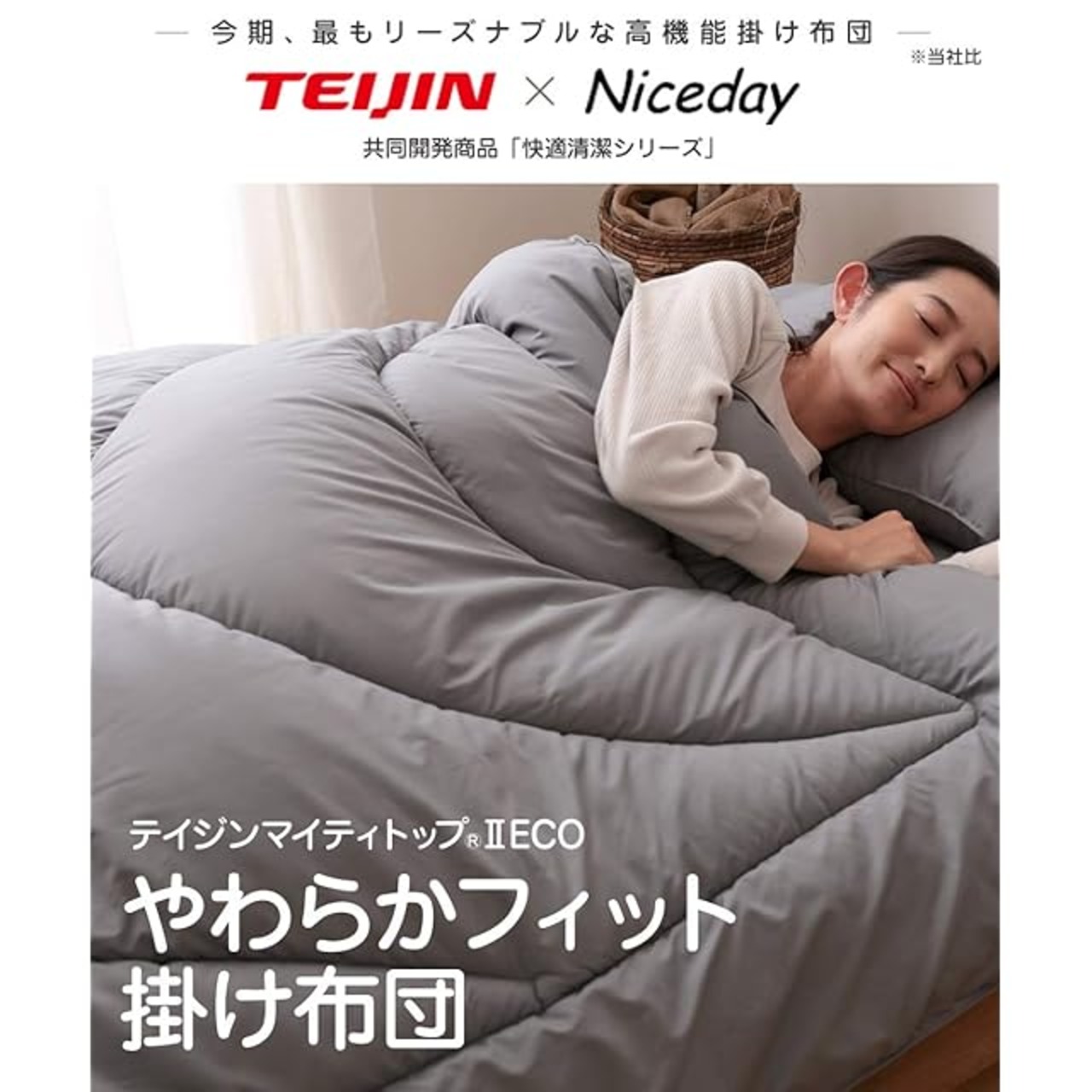 ナイスデイ 【 TEIJIN (帝人) 快適清潔シリーズ 】 掛け布団 グレー ダブル 洗える ボリュームたっぷり あたたかい 防ダニ 抗菌防臭 マイティトップ100% 身体にやさしくフィット やわらかな肌触り 無地 86550313